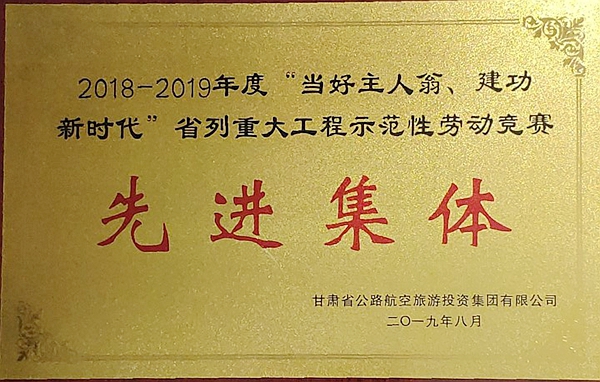 因在甘肅省公航旅集團(tuán)開(kāi)展的2018-2019年度“當(dāng)好主人翁、建功新時(shí)代”省列重大工程示范性勞動(dòng)競(jìng)賽活動(dòng)中表現(xiàn)優(yōu)異,11月17日,銀百高速TY14標(biāo)被授予“先進(jìn)集體”稱號(hào),項(xiàng)目負(fù)責(zé)人同時(shí)榮獲“優(yōu)秀項(xiàng)目經(jīng)理”稱號(hào)。