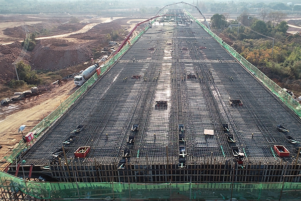 為確保產(chǎn)值如期完成,項(xiàng)目部細(xì)化節(jié)點(diǎn)目標(biāo),層層壓實(shí)責(zé)任,人人簽訂責(zé)任狀。為順利完成預(yù)應(yīng)力混凝土箱梁連續(xù)澆筑,施工管理人員晝夜輪換,從便道修整、泵車就位、交通疏導(dǎo)及后場混凝土車輛調(diào)度,到混凝土澆筑前的最后檢查,項(xiàng)目部明確分工,各司其職,為打贏勞動競賽攻堅戰(zhàn)而合力奮戰(zhàn)。