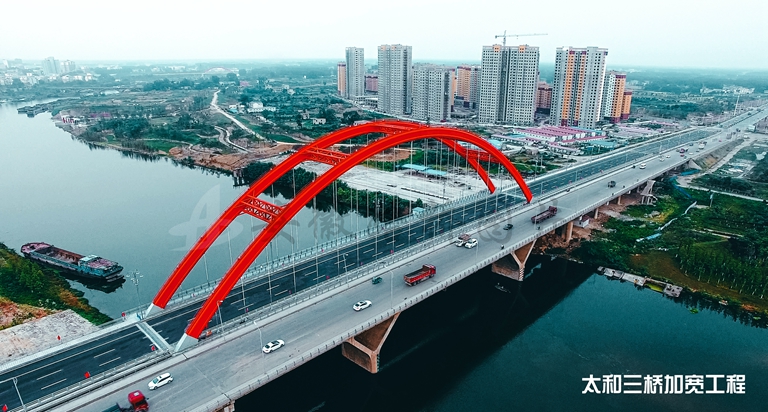 105國道(三角元至太和段)太和潁河三橋加寬工程于2015年8月開工,2017年7月順利交工。橋梁全長576.53米,主橋全寬23.2米,引橋全寬19.5m,主跨為152米下承式鋼管砼系桿拱橋,引橋為30m箱梁結(jié)構(gòu),下部結(jié)構(gòu)采用柱式墩,鉆孔灌注樁基礎(chǔ),設(shè)計荷載等級為公路-I級。該項目建成通車以來,有效改善了太和縣城潁河兩岸的交通狀況,對加快城鎮(zhèn)化建設(shè)起到了重要作用。