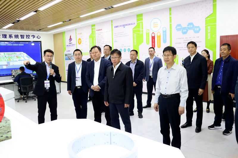 4月27日上午,住房和城鄉(xiāng)建設(shè)部建筑市場(chǎng)監(jiān)管司副司長(zhǎng)廖玉平,安徽省住建廳黨組成員、副廳長(zhǎng)方廷勇一行蒞臨安徽建工中侖智能制造有限公司調(diào)研指導(dǎo)工作。