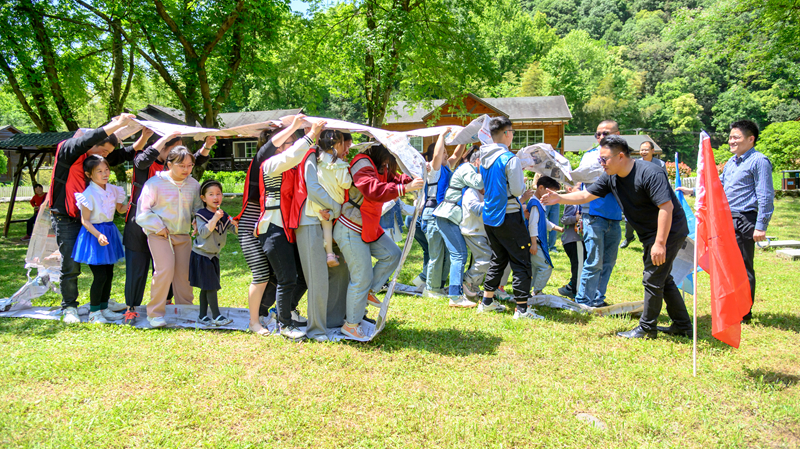 在家屬互動(dòng)活動(dòng)現(xiàn)場(chǎng),“親子組”和“青年組”在教官的帶領(lǐng)下,依次開(kāi)展了“消消樂(lè)”“坦克履帶”“面粉接力賽”“動(dòng)力圈”等團(tuán)建游戲,現(xiàn)場(chǎng)氣氛熱烈,高潮迭起,掌聲陣陣,歡聲笑語(yǔ)不斷。大家在游戲中增進(jìn)交流,加深感情,一起享受著快樂(lè)的大家庭時(shí)光。活動(dòng)最后,職工家屬們還依次參觀了項(xiàng)目駐地建設(shè),并詳細(xì)了解了項(xiàng)目“家文化”建設(shè)情況。