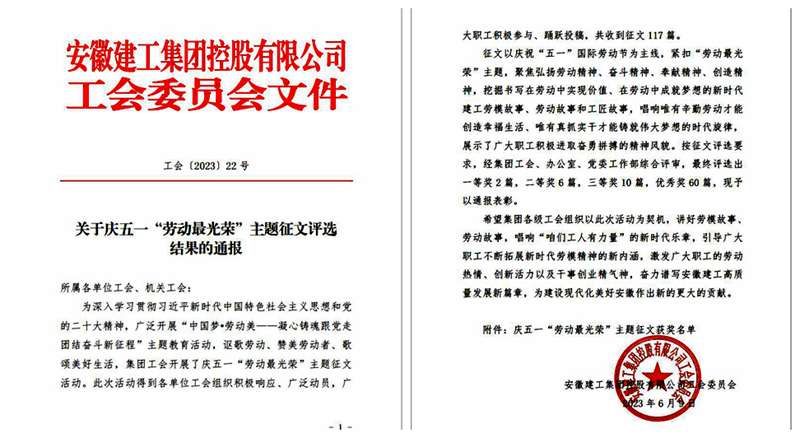 安徽路橋公司在集團(tuán)慶五一“勞動最光榮”主題征文活動中喜獲佳績