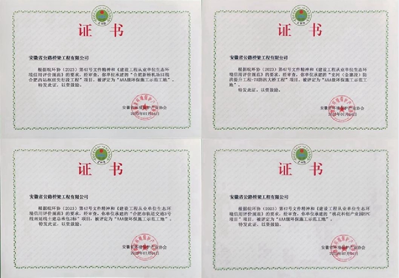 近日,公司承建的桃花科創(chuàng)產(chǎn)業(yè)園EPC項(xiàng)目、史河(金寨段)防洪提升工程-7#防汛大橋項(xiàng)目、合肥新橋機(jī)場(chǎng)S1線先行段項(xiàng)目、合肥軌道3號(hào)線南延2標(biāo)項(xiàng)目獲評(píng)安徽省環(huán)境保護(hù)產(chǎn)業(yè)協(xié)會(huì)“AAA級(jí)環(huán)保施工示范工地”稱號(hào)。