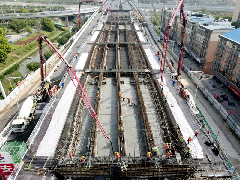 百舸爭(zhēng)流,奮楫者先。項(xiàng)目以勞動(dòng)競(jìng)賽為著力點(diǎn),強(qiáng)化統(tǒng)籌調(diào)度,確保工程項(xiàng)目的有序推進(jìn)。項(xiàng)目全線位于肥西上派鎮(zhèn)中心城區(qū),施工工作面與軌道交叉,施工空間及工作面零星且狹窄,導(dǎo)致交通導(dǎo)改難度大,難以形成大規(guī)模的工作面,嚴(yán)重制約項(xiàng)目生產(chǎn)。項(xiàng)目團(tuán)隊(duì)采取“見(jiàn)縫插針”策略,交付一段施工一段,確保工作面不閑置。此外,項(xiàng)目主橋第四聯(lián)為項(xiàng)目跨度最大的一聯(lián),主線下方為軌道3號(hào)線,考慮地鐵最后一段交叉工作面交付時(shí)間較遲,項(xiàng)目多次組織協(xié)調(diào)會(huì)及專家論證會(huì),在確保結(jié)構(gòu)安全的前提下,及時(shí)調(diào)整施工方案,于11月22日順利完成該聯(lián)箱梁的首次混凝土澆筑,預(yù)計(jì)較原計(jì)劃工期提前35天,為主線橋通車目標(biāo)奠定了基礎(chǔ)。