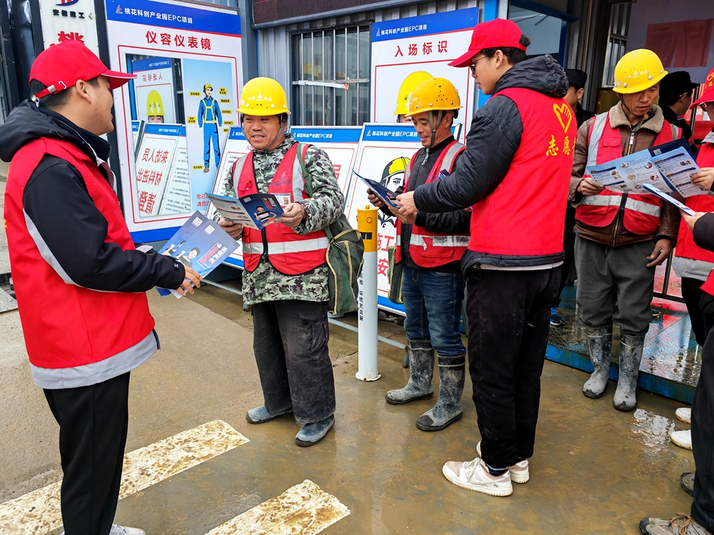 桃花科創(chuàng)產(chǎn)業(yè)園項目團支部走進工友群體,開展普法志愿宣傳宣講活動,旨在提升工友們的法律意識。
