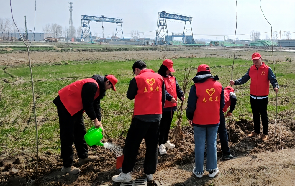 合周高速4標(biāo)東淝河大橋項(xiàng)目組織青年員工積極開展義務(wù)植樹活動,在項(xiàng)目周邊揮鍬鏟土、扶樹正苗、培土澆水,共同美化屬地環(huán)境。