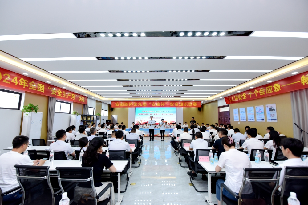 6月4日下午,安徽路橋第九屆“安康杯”安全知識競賽成功舉辦。此次競賽以“安全生產(chǎn)提品質(zhì) 科學(xué)管理促安康”為主題,旨在深化安全生產(chǎn)理念,提升員工安全素質(zhì)。安徽省建設(shè)建材工會(huì)(省住建廳文明辦)四級調(diào)研員邱亮出席活動(dòng)并作點(diǎn)評講話,安徽省建設(shè)工程質(zhì)量與安全協(xié)會(huì)副秘書長趙永生出席活動(dòng),公司黨委書記、董事長錢申春致辭。建工控股工程管理部(安全監(jiān)察局)副部長胡曉東,公司領(lǐng)導(dǎo)韋秀剛、石懷遠(yuǎn)及所屬各單位有關(guān)負(fù)責(zé)同志、職工代表共計(jì)80余人現(xiàn)場觀看比賽。