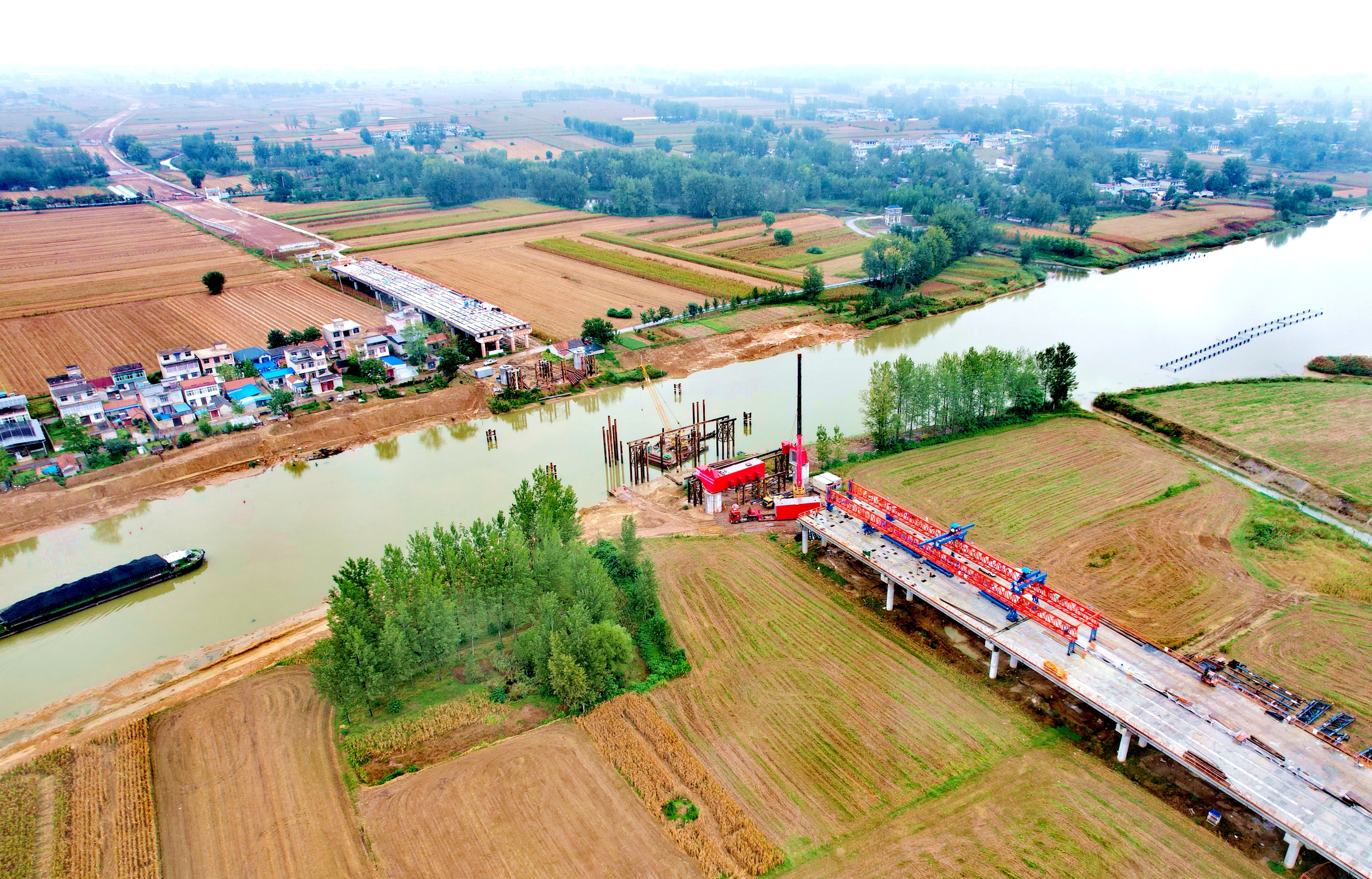 【路橋“競(jìng)”行時(shí)】S235濉唐路三期項(xiàng)目澮河大橋完成首片鋼箱梁架設(shè)
