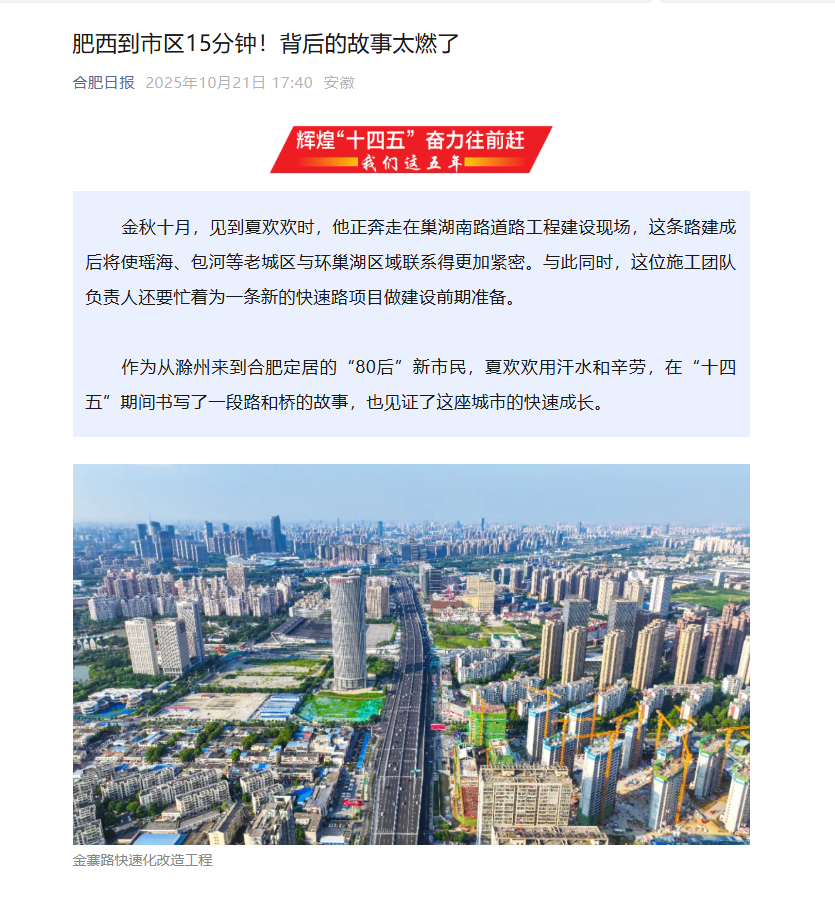 【名媒聚焦】合肥日?qǐng)?bào):輝煌“十四五” 奮力往前趕系列報(bào)道——肥西到市區(qū)15分鐘!背后的故事太燃了