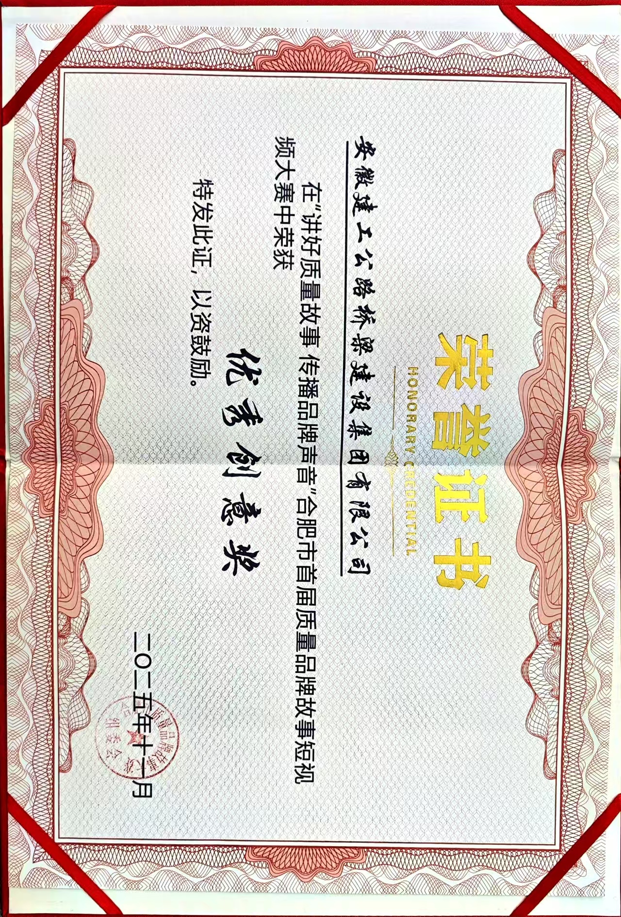 近日,合肥市2025年質(zhì)量品牌故事短視頻大賽頒獎典禮圓滿落幕。公司參賽作品《井中智造:360°旋轉(zhuǎn)智能布料機(jī)澆筑合肥質(zhì)量新高度》榮獲“優(yōu)秀創(chuàng)意獎”。