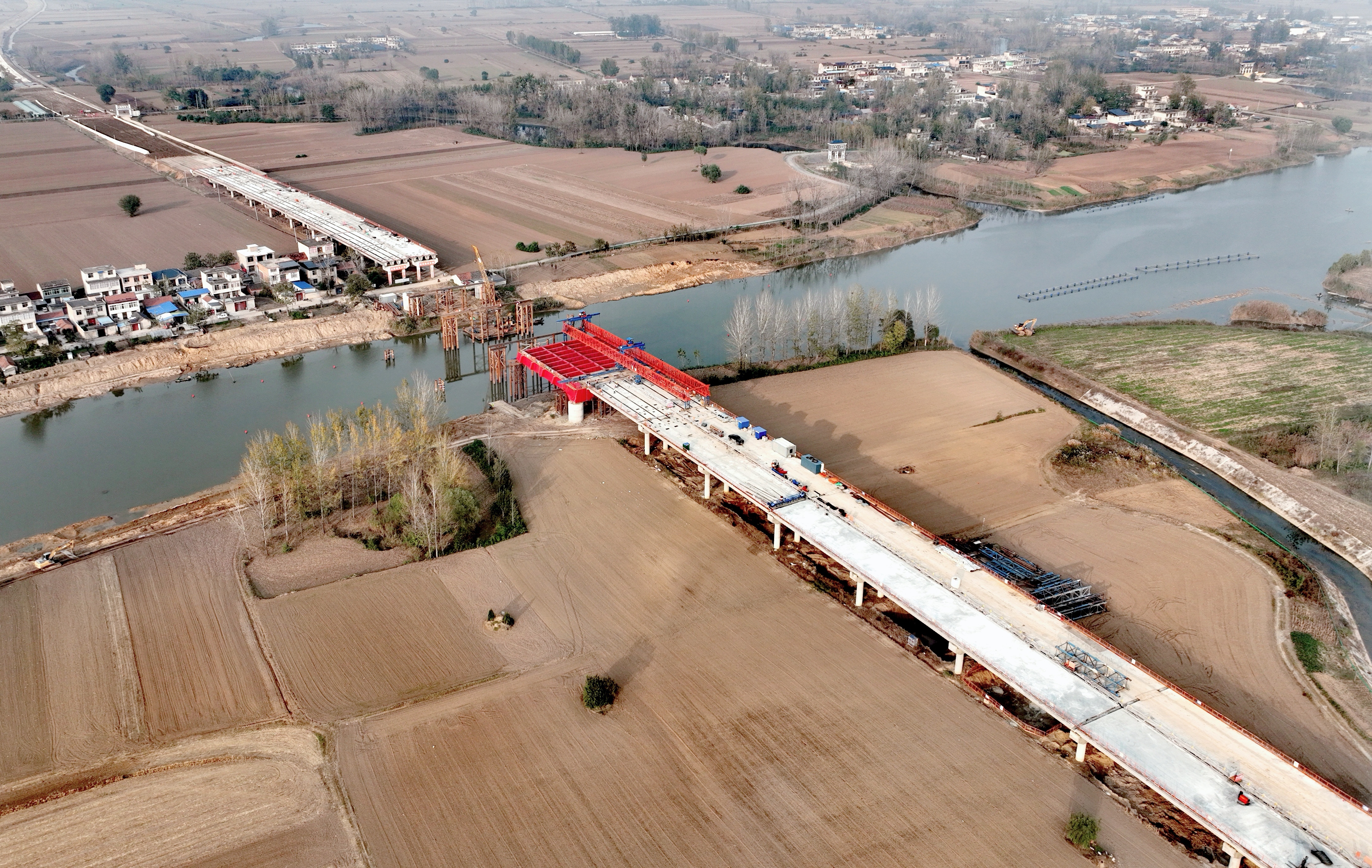 四季度以來,項目已完成多座橋梁的梁板架設及現(xiàn)澆板澆筑,累計架設30米箱梁48片、T梁172片。重點控制性工程澮河大橋于10月11日完成首片鋼箱梁架設,實現(xiàn)以20%工期完成32%產(chǎn)值的目標。當前,項目正加快推進路基連續(xù)交驗與水穩(wěn)規(guī)?;┕ぃ鎲訕蛄荷喜拷Y構施工。