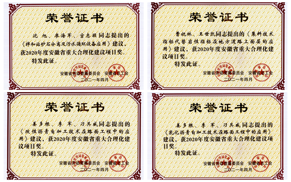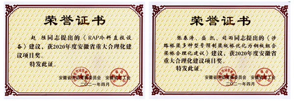 公司10項(xiàng)合理化建議榮獲省重大合理化建議項(xiàng)目獎(jiǎng)